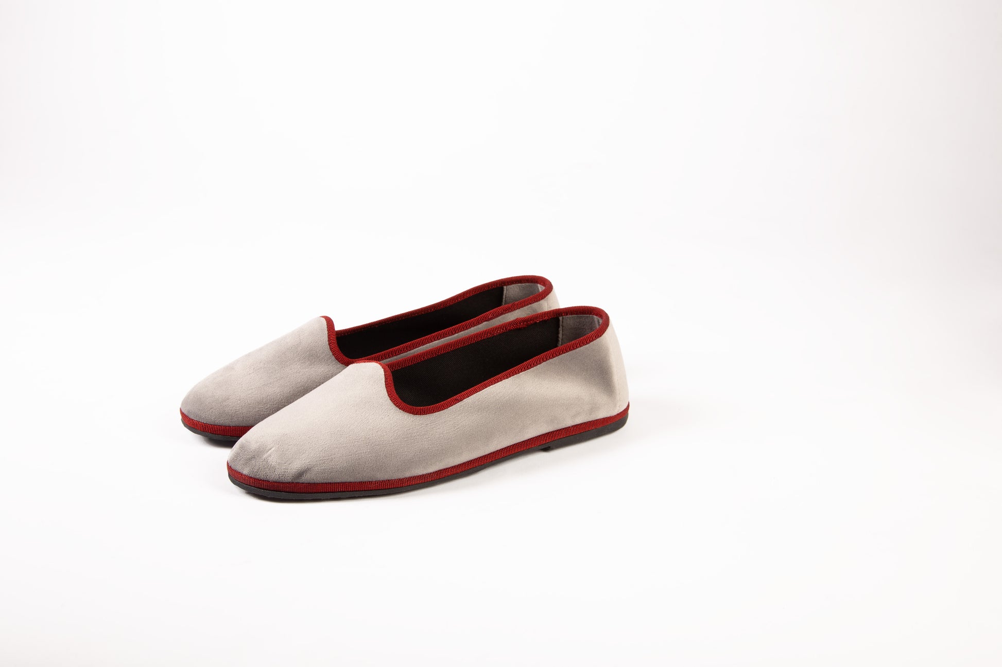 Friulane in velluto grigio con bordo amaranto