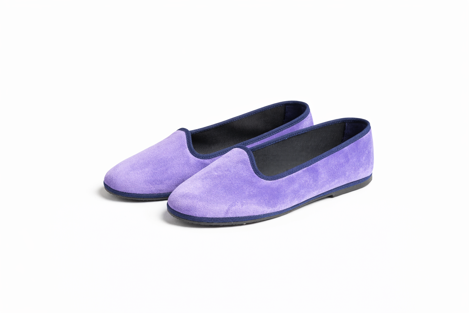 Friulane in velluto lilla con bordo blu scuro