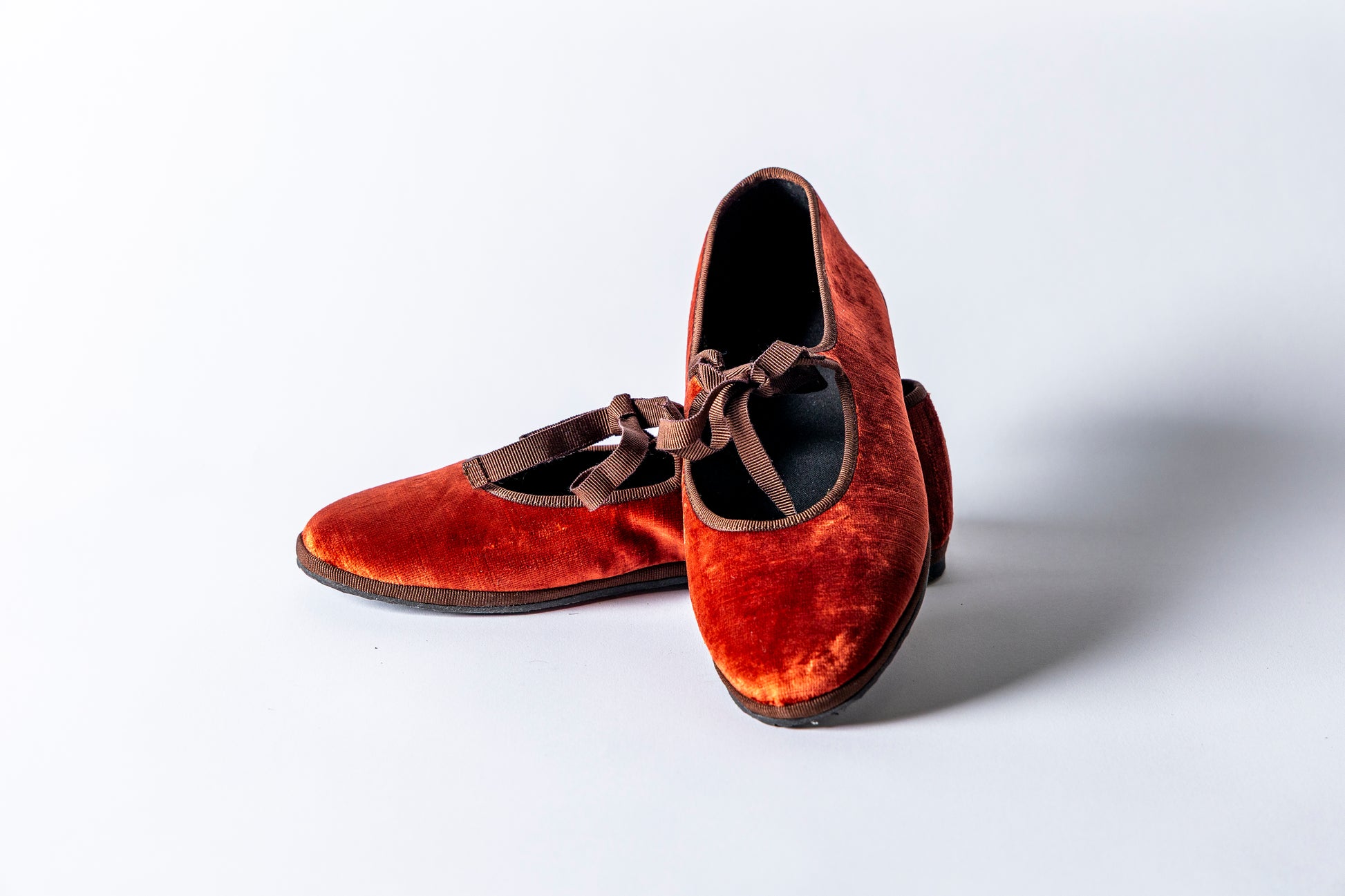Meneghine con fiocchetto in velluto mattone effetto seta con bordo marrone