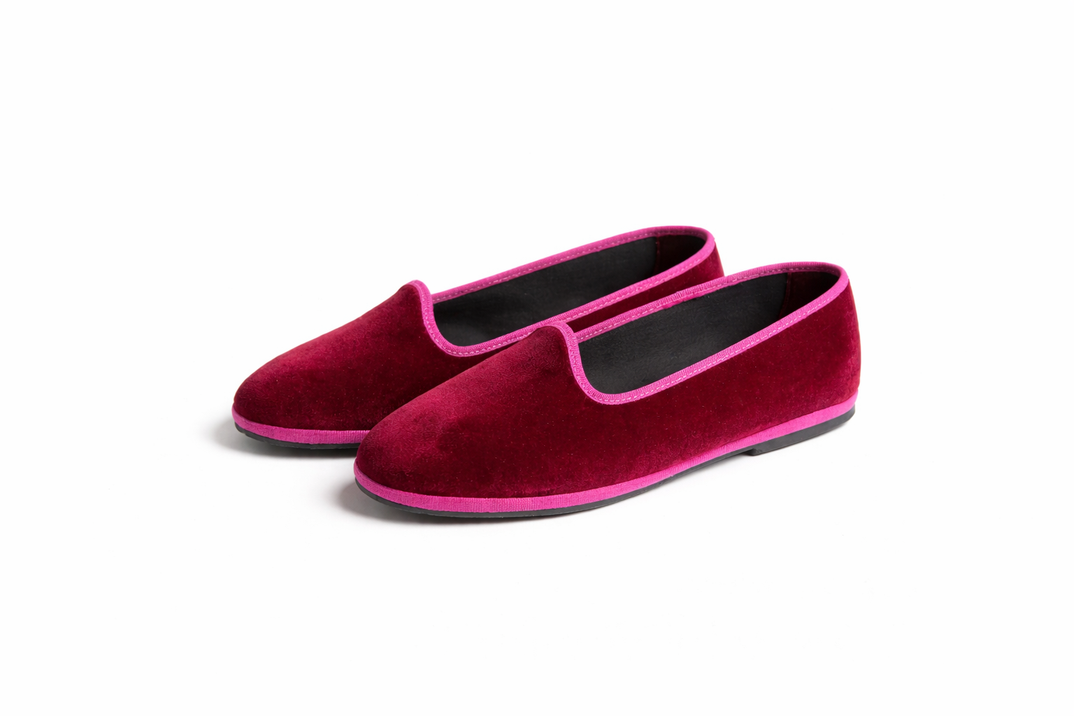 Friulane in velluto bordeaux con bordo rosa.
