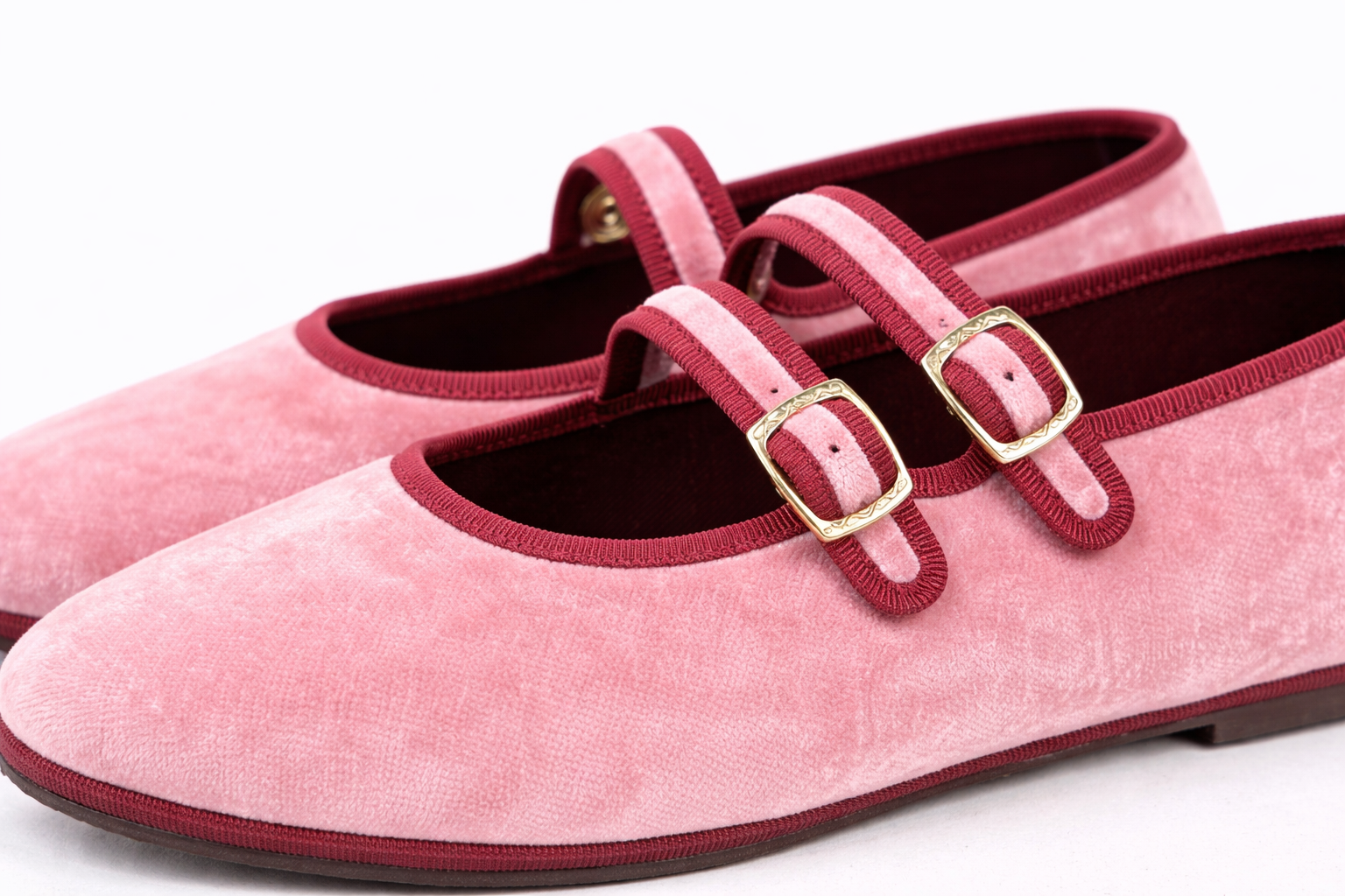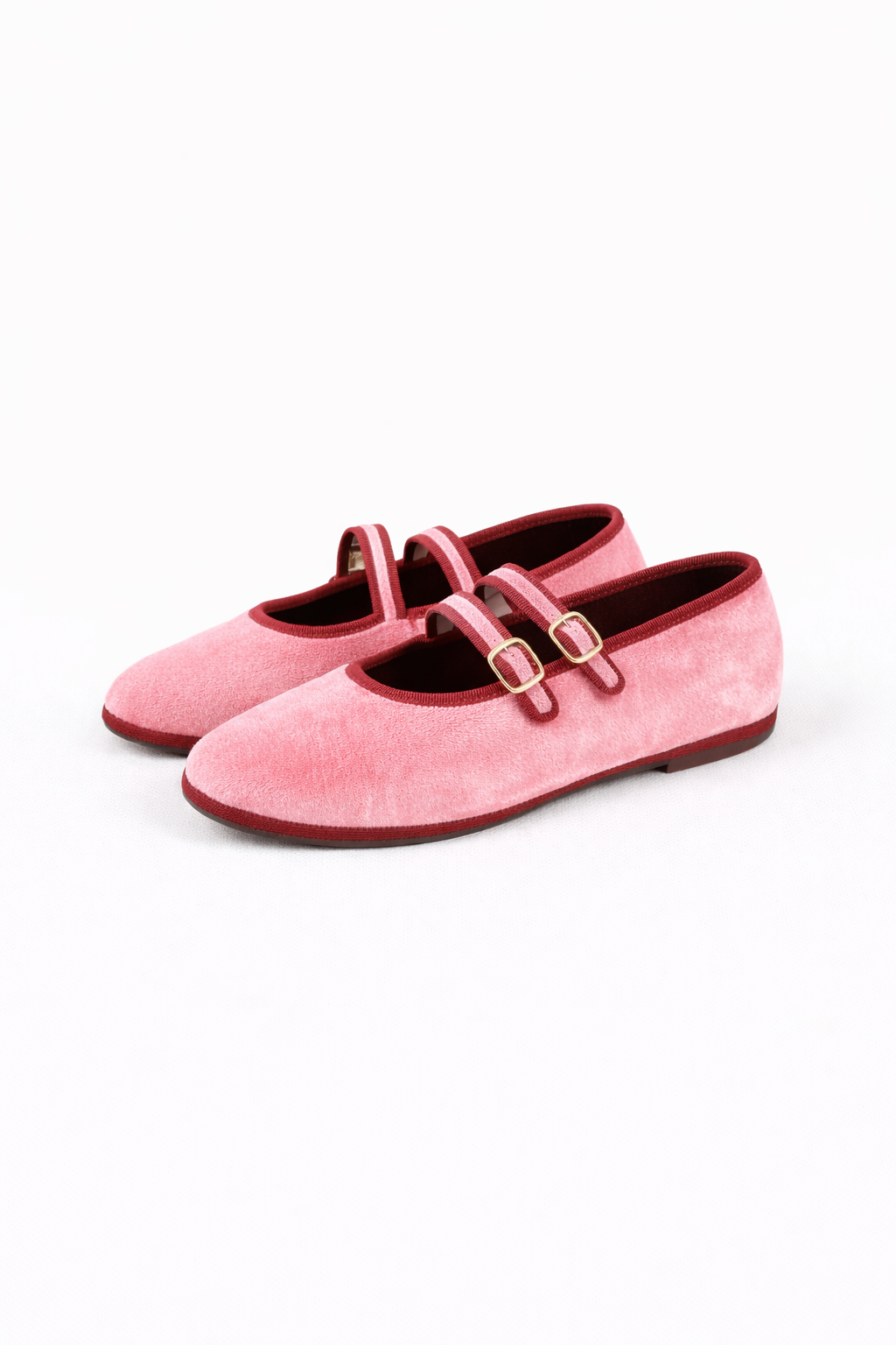 Maryjane doppio laccio in velluto fuxia con bordo amaranto