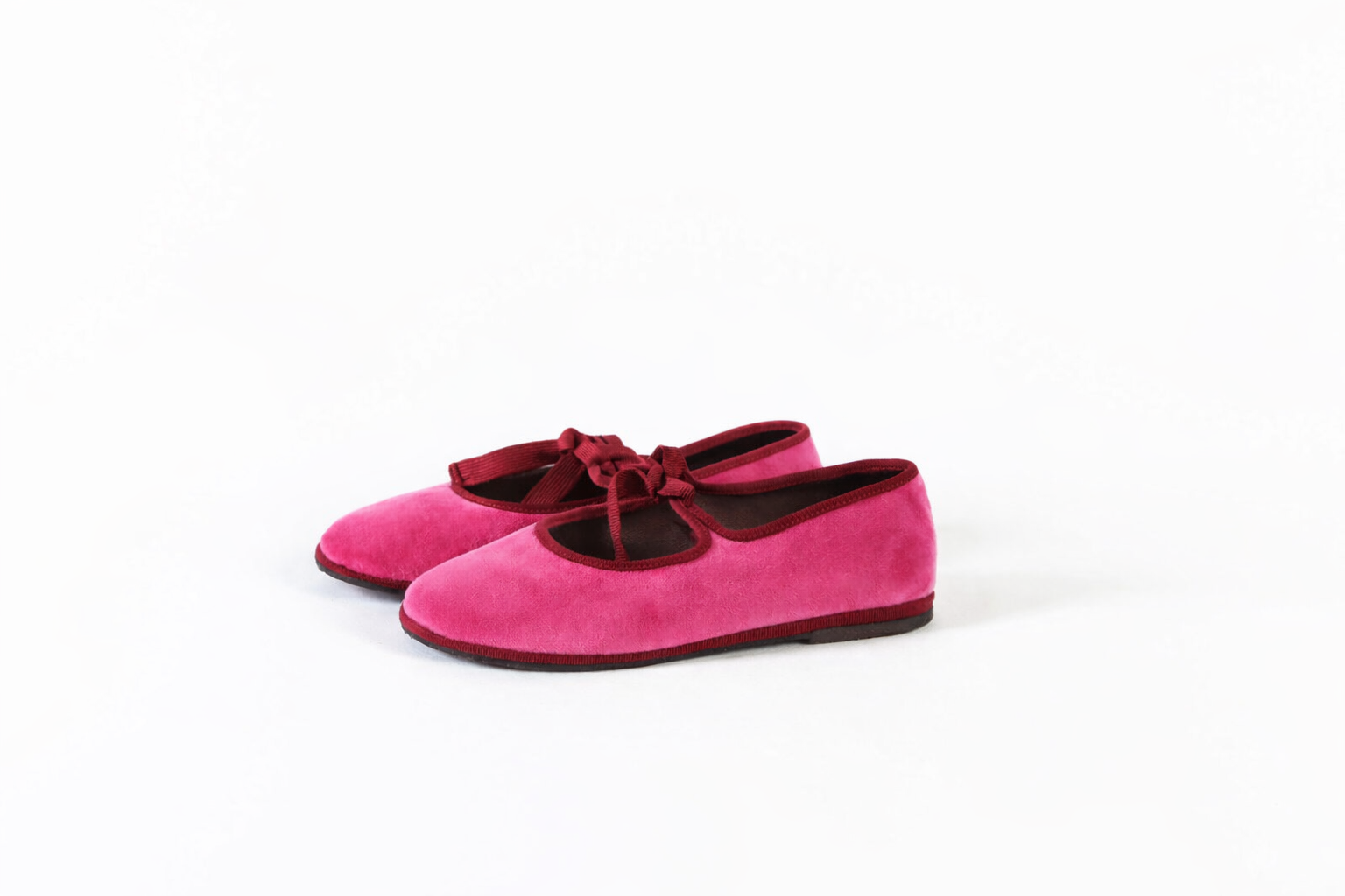 Meneghine con fiocchetto in velluto rosa con bordo amaranto