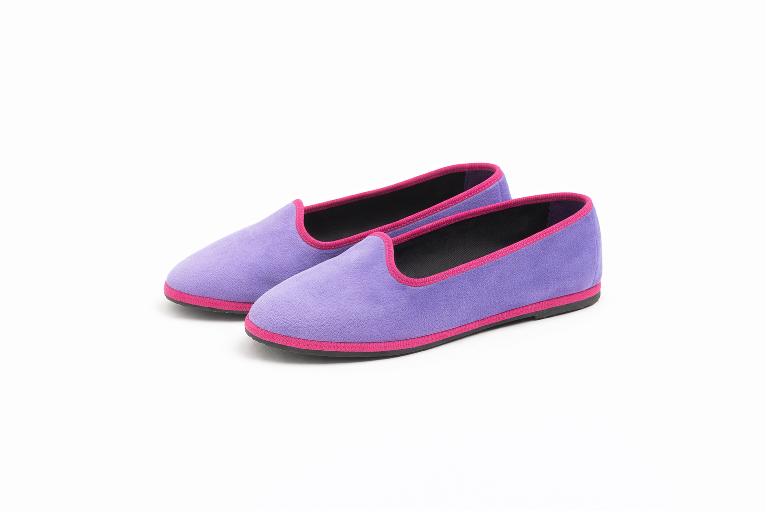 Friulane in velluto lilla con bordo rosa