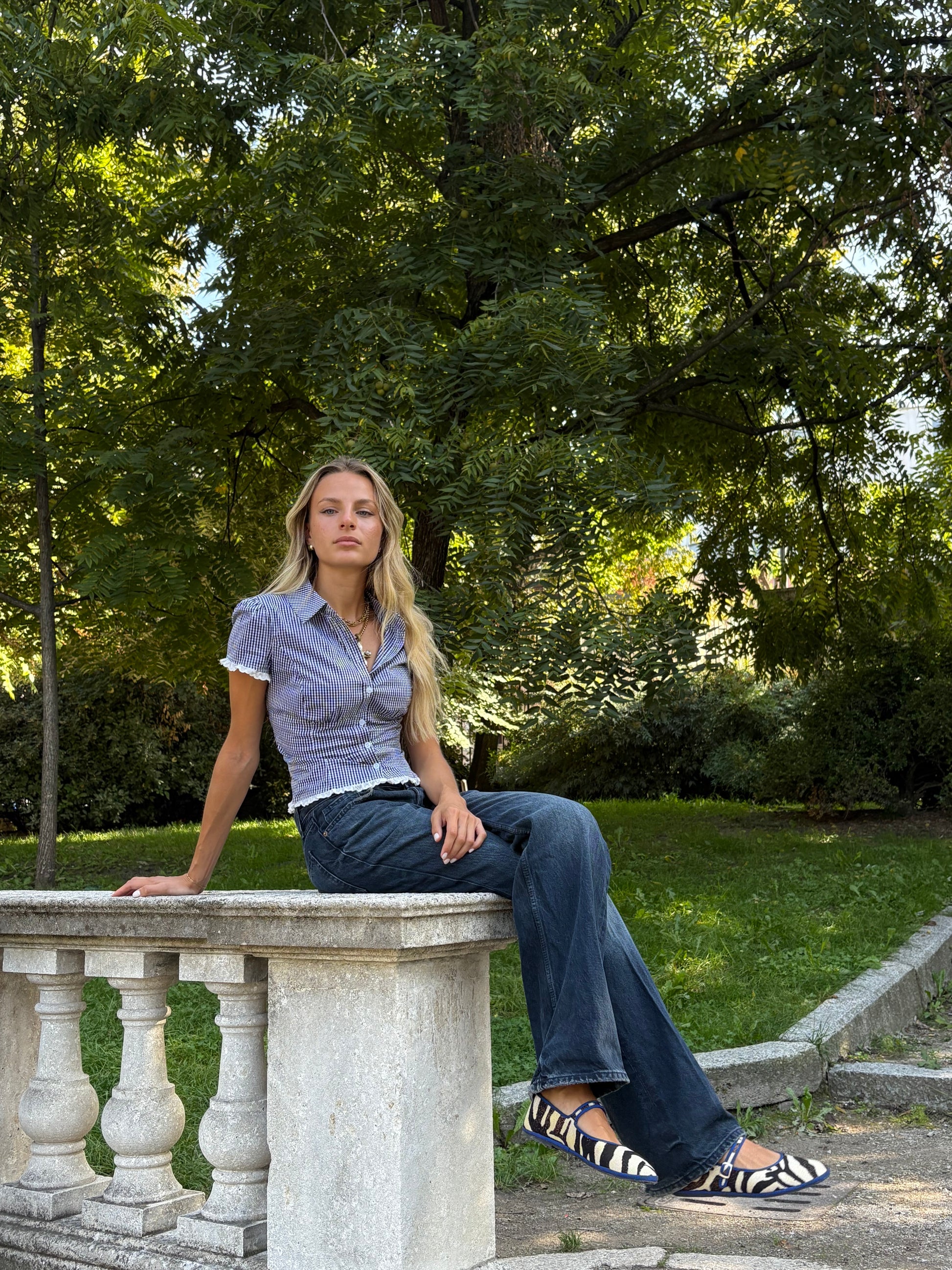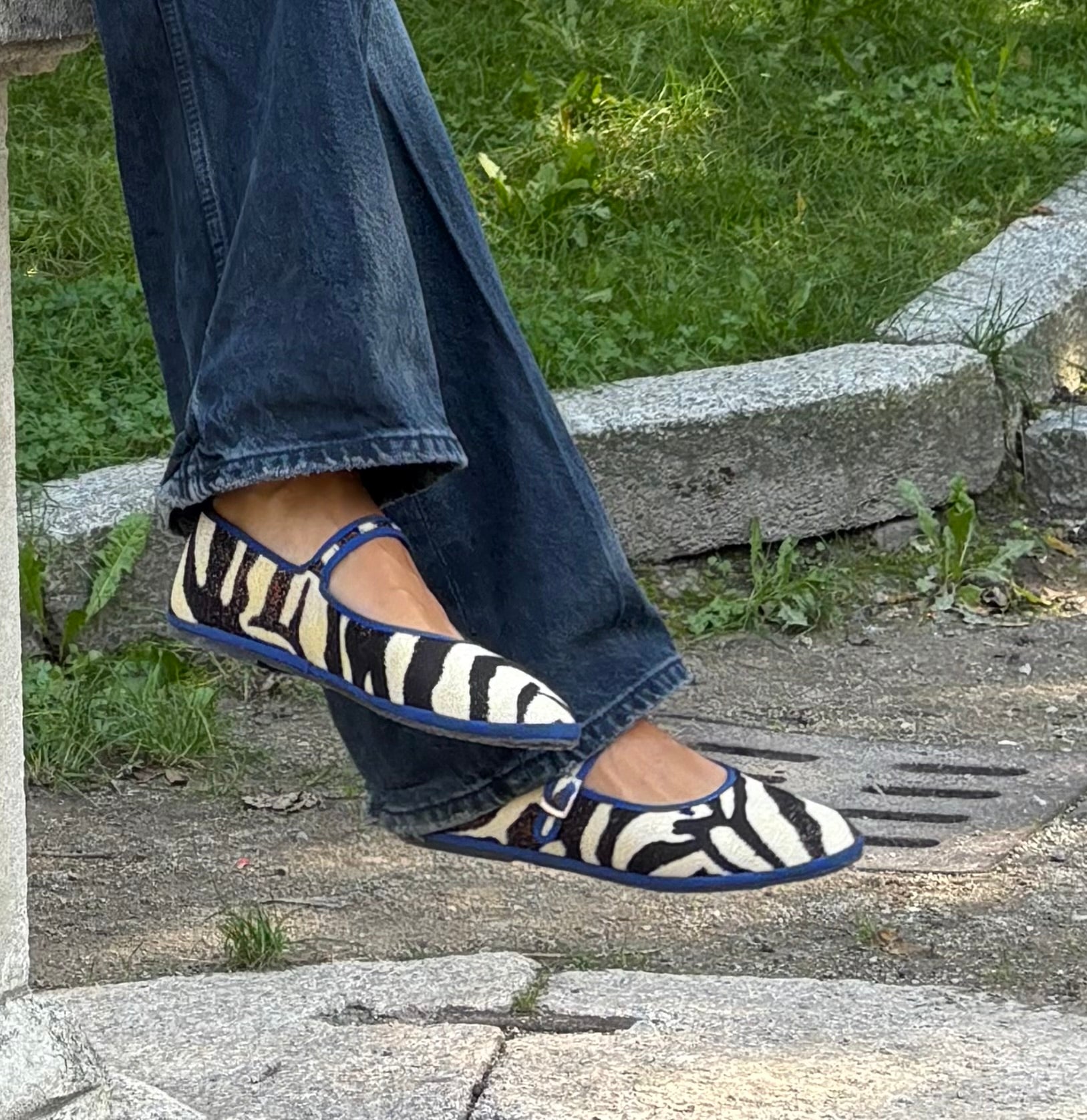 Friulane MARY JANE zebrate con bordo blu